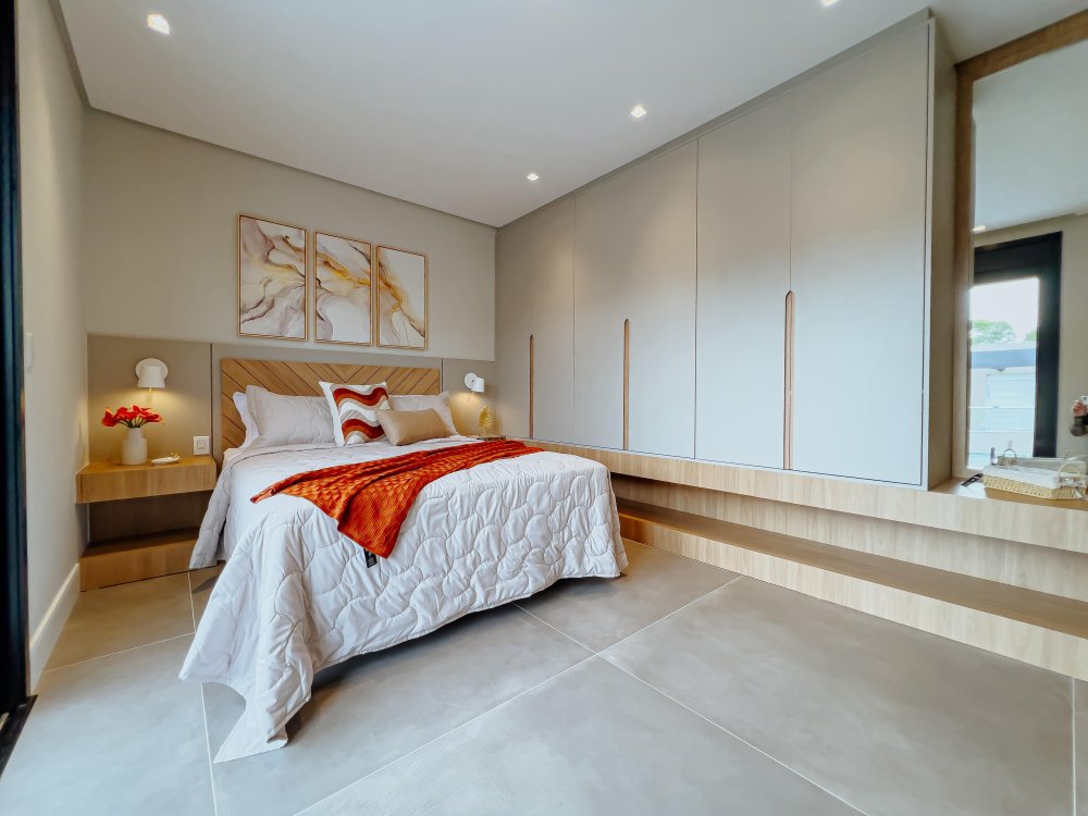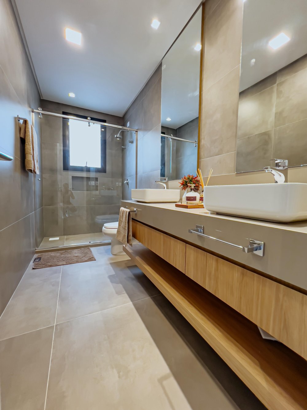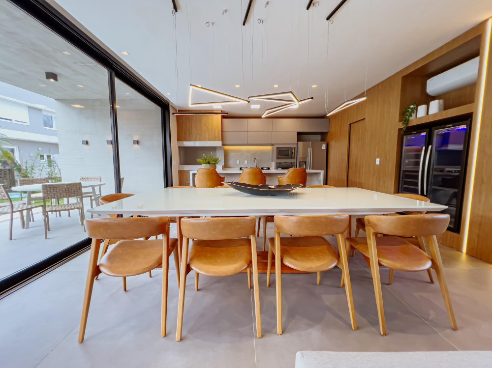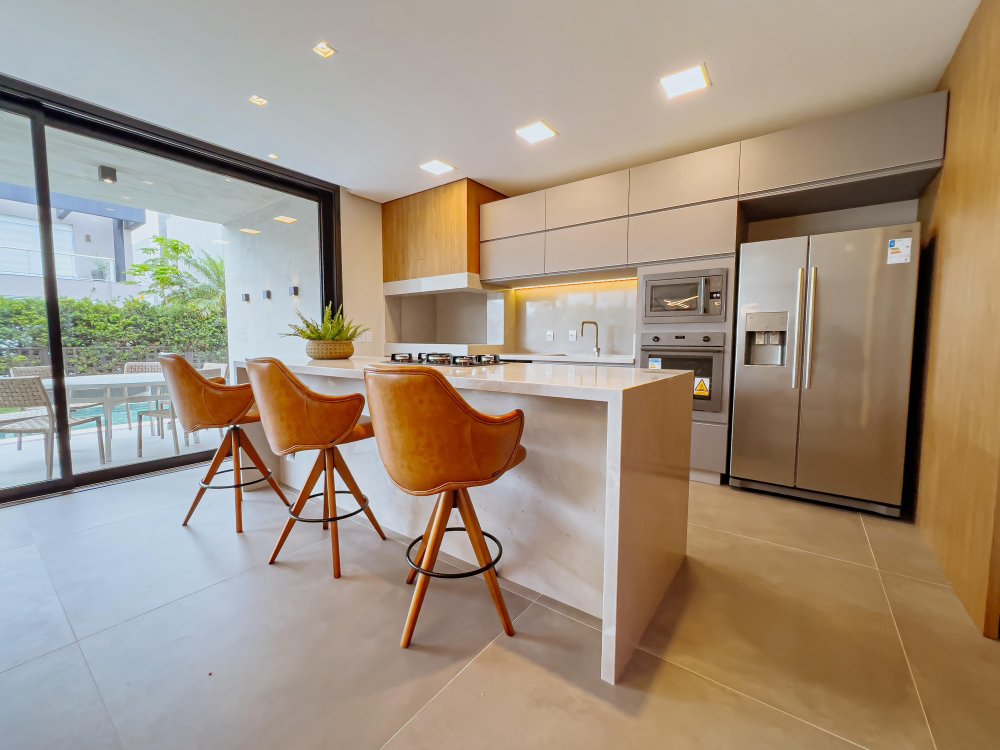 Com generosos 337m² de área total e privativa, esta casa é um verdadeiro oásis de bem-estar. Totalmente mobiliada, ela oferece 5 dormitórios, todos eles suítes elegantemente decoradas, proporcionando privacidade e conforto para você e sua família. Os 5 banheiros, cuidadosamente projetados, e o lavabo adicional, atendem às necessidades de todos os moradores e visitantes.