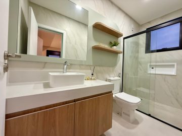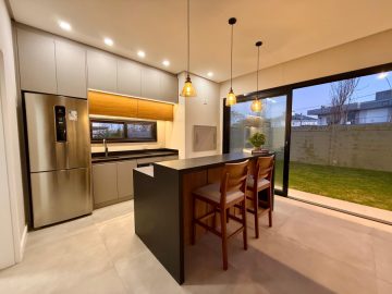 A casa possui um design moderno com **cozinha americana** integrada ao espaço social, ideal para receber amigos e familiares. Desfrute de momentos inesquecíveis com um espaço gourmet perfeito para churrascos e celebrações.