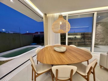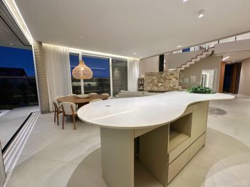 A casa possui um design moderno com **cozinha americana** integrada ao espaço social, ideal para receber amigos e familiares. Desfrute de momentos inesquecíveis com um espaço gourmet perfeito para churrascos e celebrações.