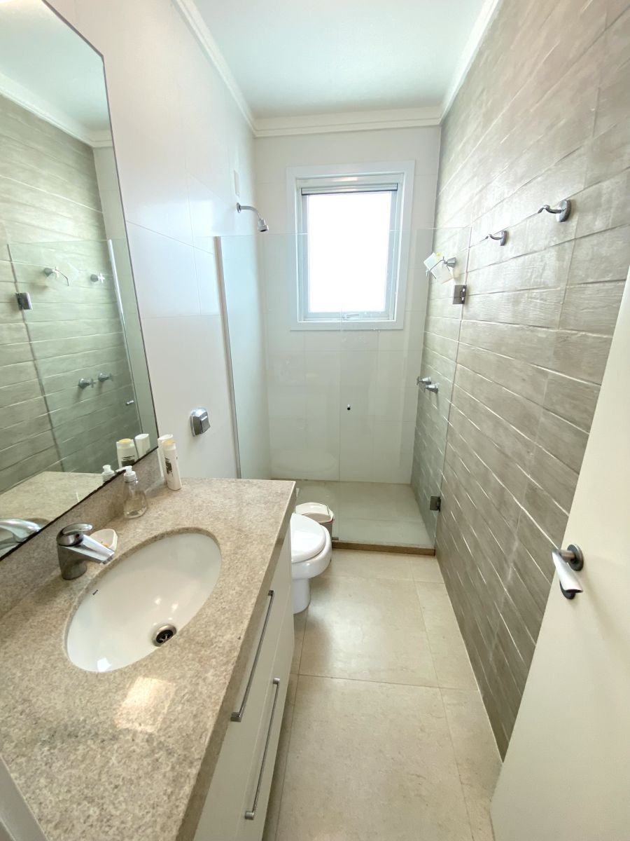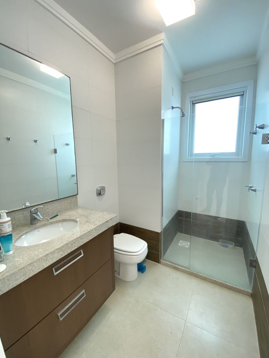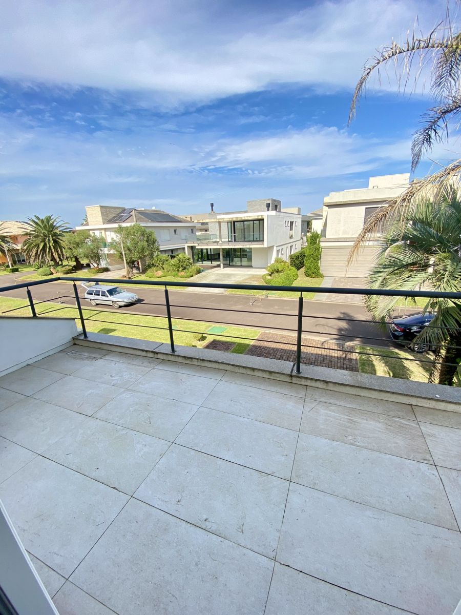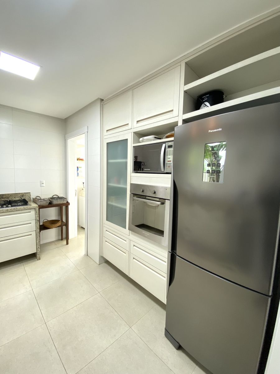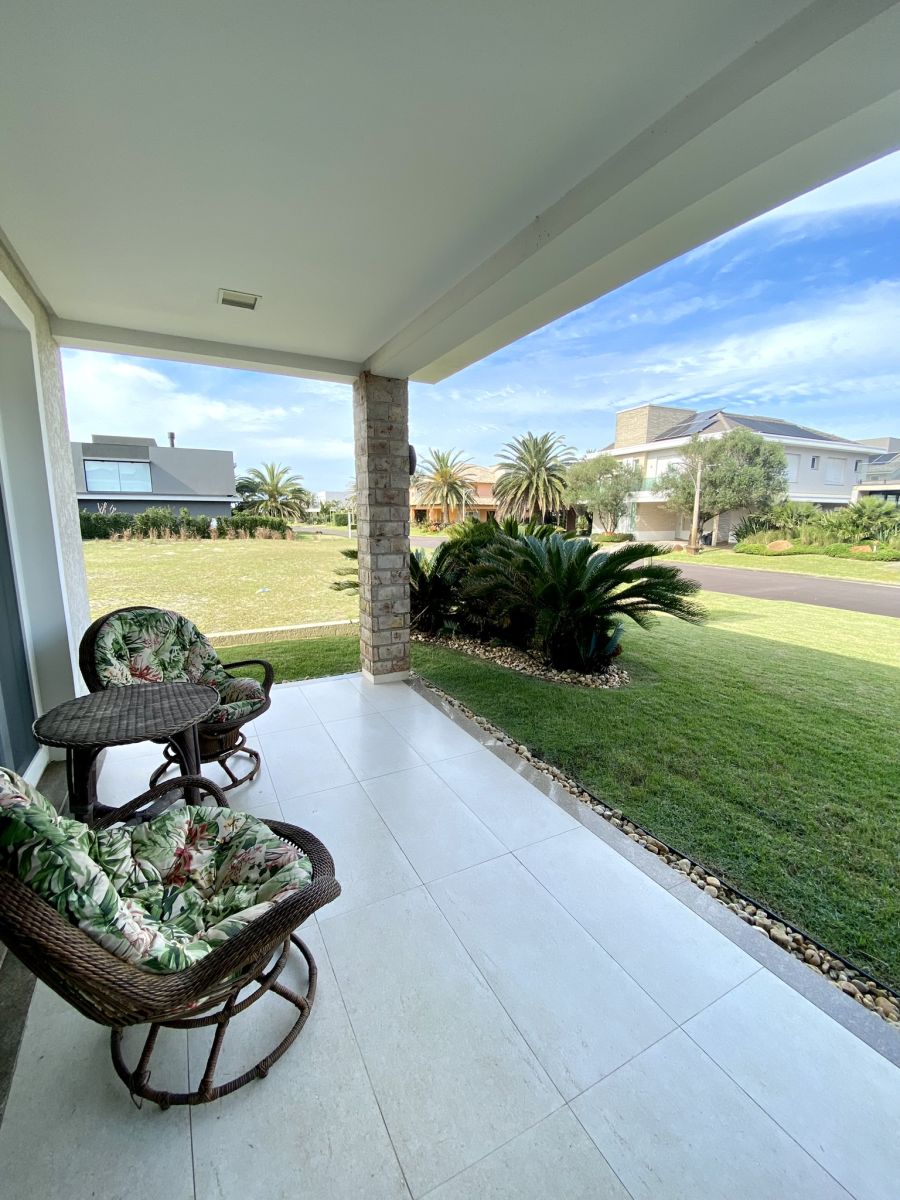 Amplo living no térreo com lareira revestida em madeira, lavabo, sala de jantar para 12 pessoas, gourmet integrado com parrilla Uruguaia, suite térrea master com 32m², cozinha fechada e área de serviçoo com dependência de empregada completa. Segundo pavimento possui ambiente intimo com mesa de sinuca e sala de TV, 4 dormitórios, sendo 2 suítes, e banheiro social.