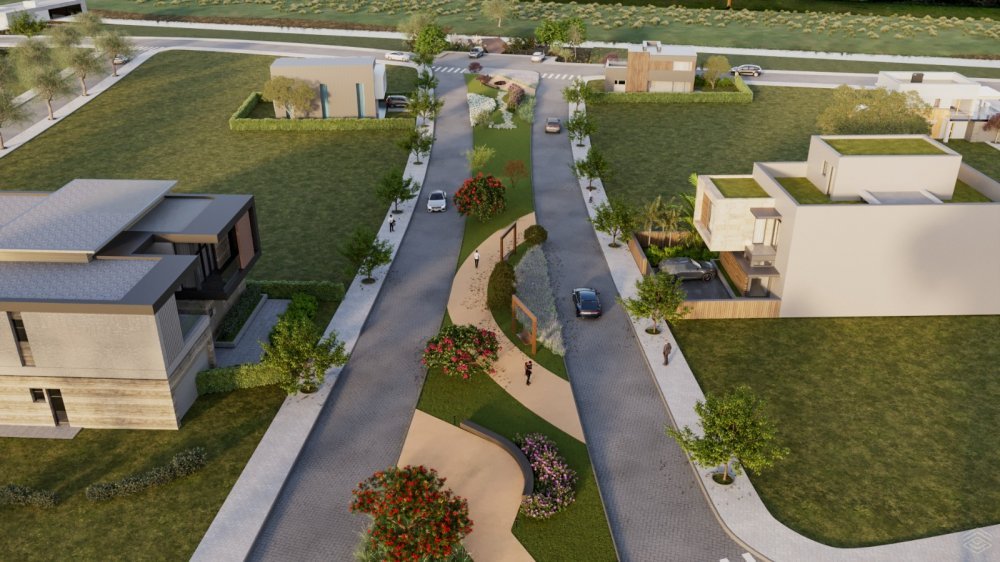 - Terrenos: 300m² à 734m² (frente média com 12m);