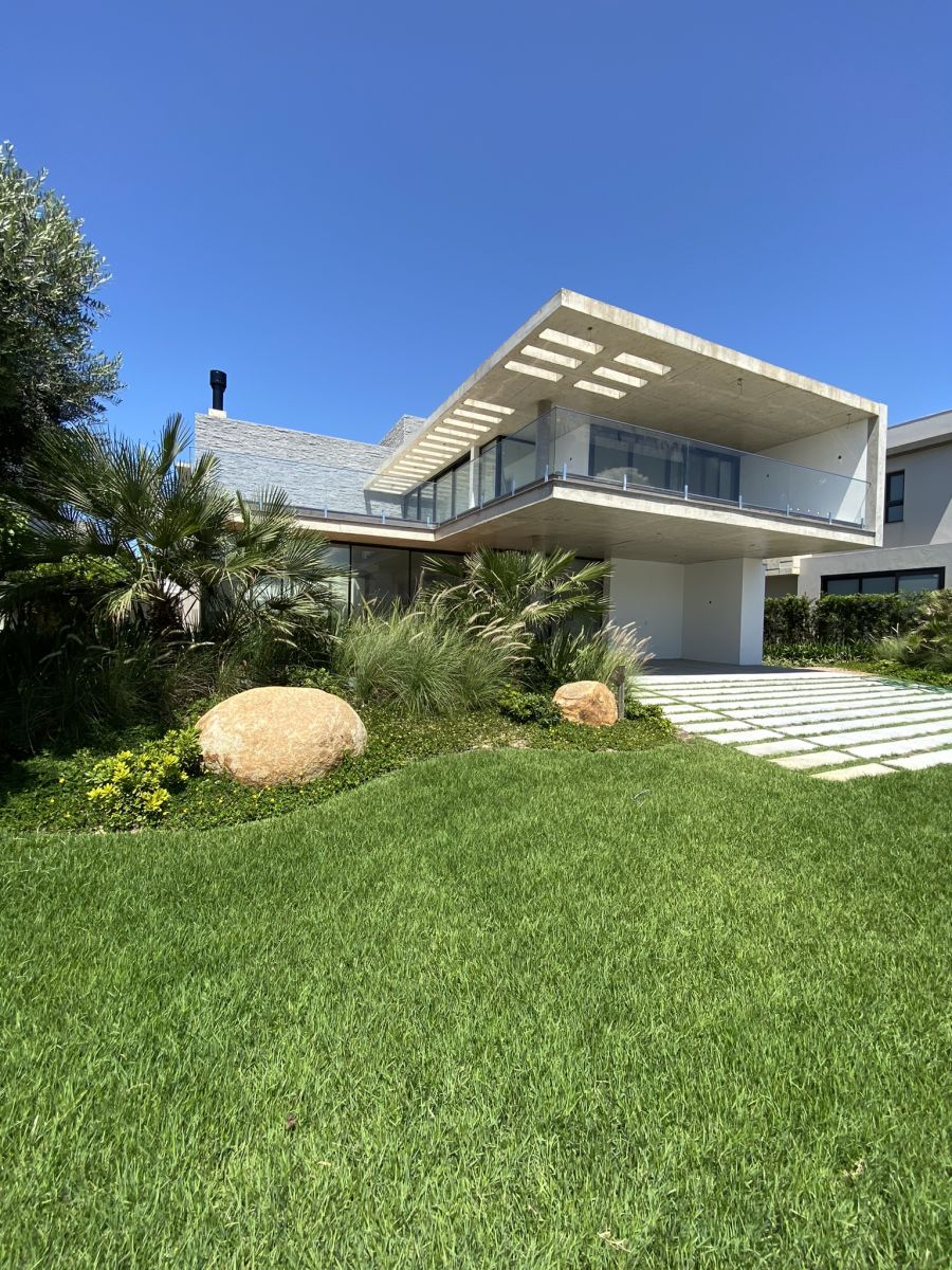 Amplo living no térreo com lareira revestida em madeira, lavabo, sala de jantar para 12 pessoas, gourmet integrado com parrilla Uruguaia, suite térrea master com 32m², cozinha fechada e área de serviçoo com dependência de empregada completa. Segundo pavimento possui ambiente intimo com mesa de sinuca e sala de TV, 4 dormitórios, sendo 2 suítes, e banheiro social.